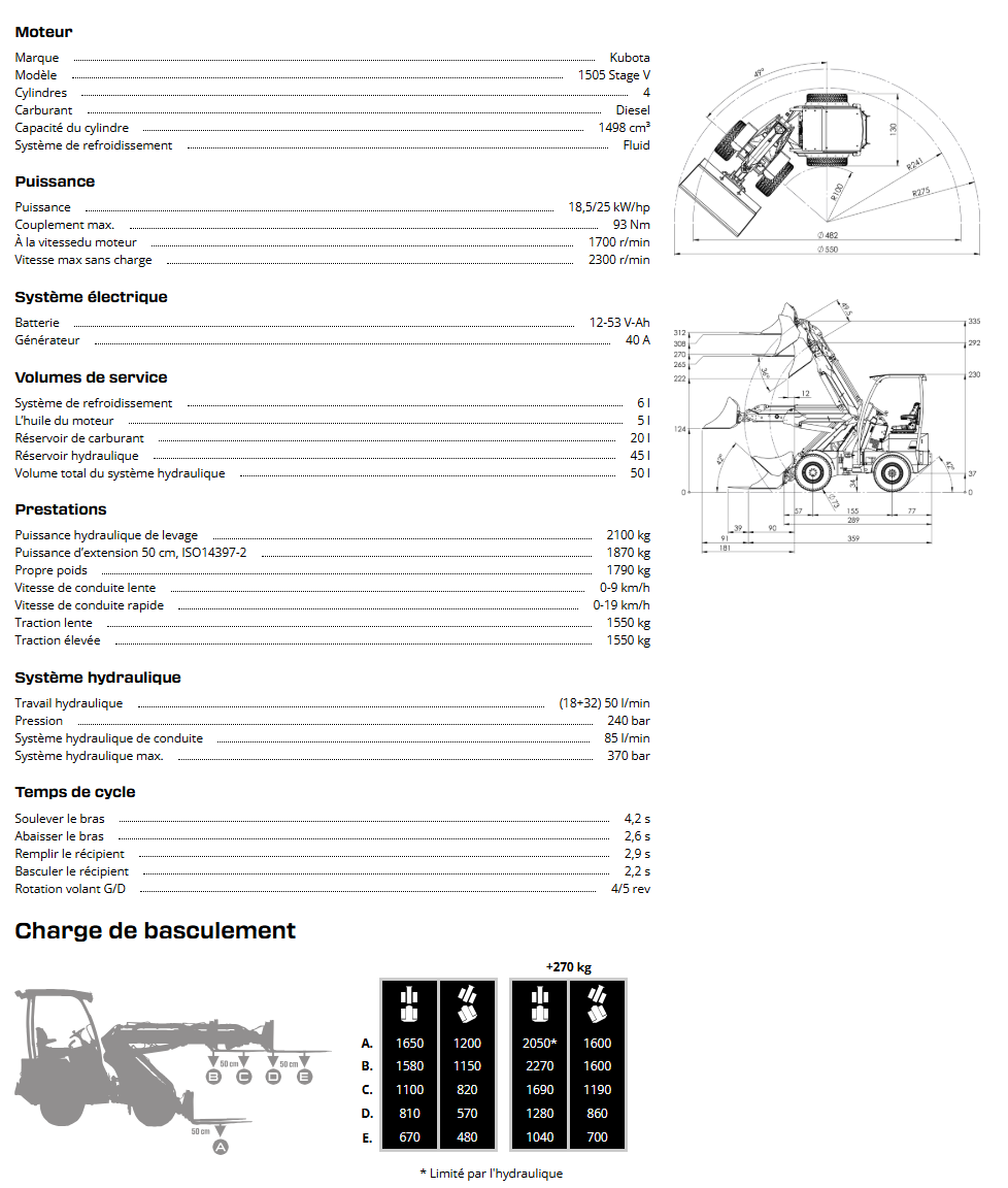 Livré avec fourches a palettes et bac a terre.
